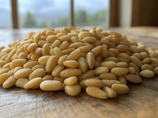 Delicate Afghan pine nuts from Chalghoza pines, offering a subtle, buttery taste, perfect for gourmet dishes.